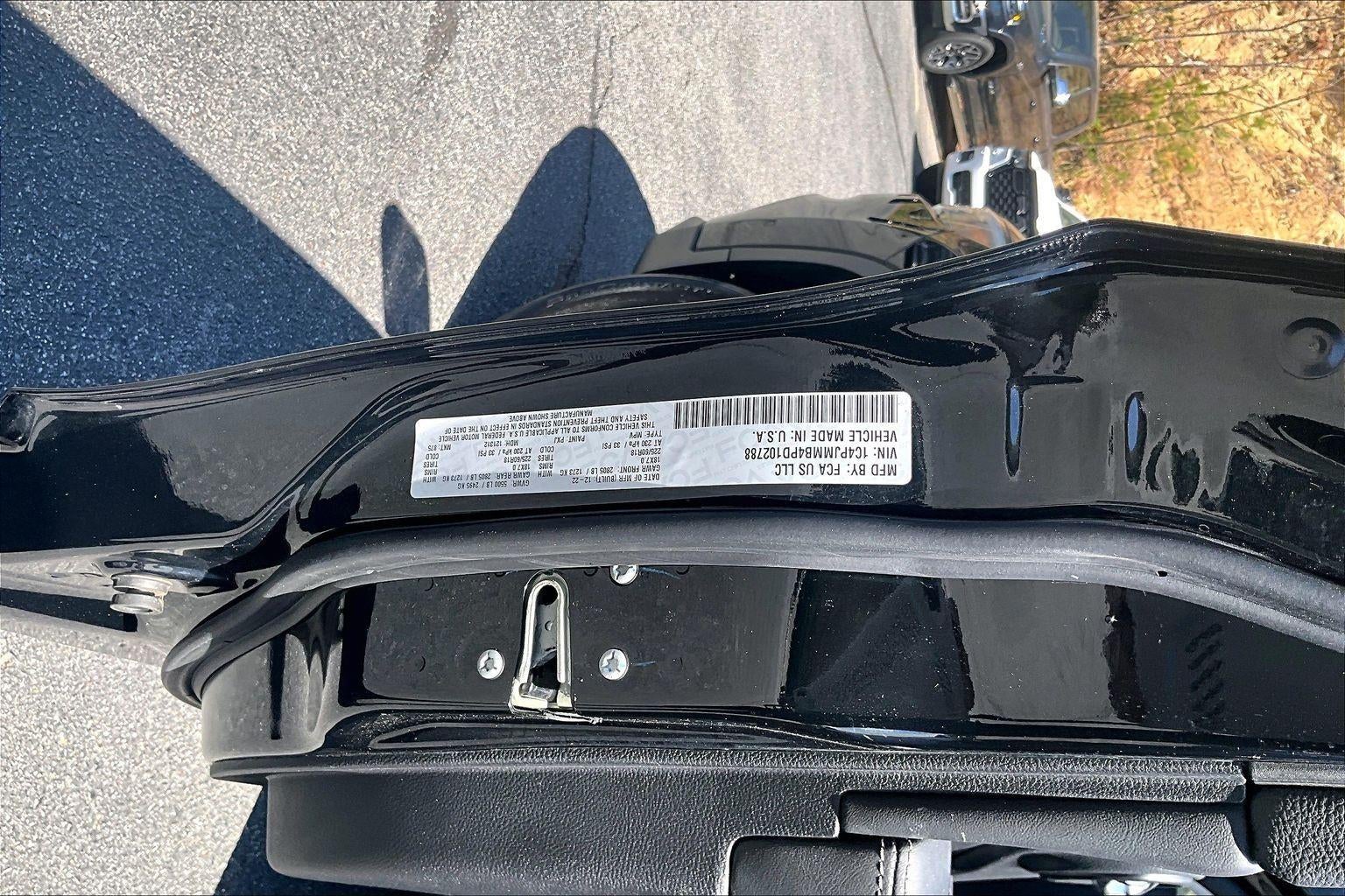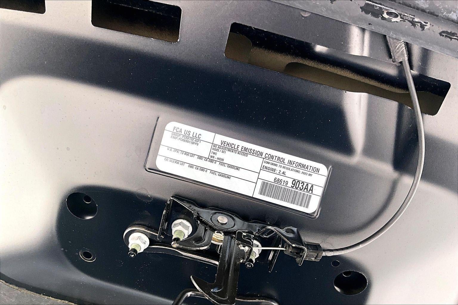 ENGINE: 2.4L I4 ZERO EVAP M-AIR W/ESS, TRANSMISSION: 9-SPEED 948TE AUTOMATIC, QUICK ORDER PACKAGE 2BT, WHEELS: 18"" X 7"" GLOSS BLACK 5-SPOKE ALUMINUM, TIRES: 225/60R18 BSW TOURING, DIAMOND BLACK CRYSTAL PEARLCOAT, BLACK, PREMIUM LEATHER TRIMMED BUCKET SEATS, COMPACT SPARE TIRE