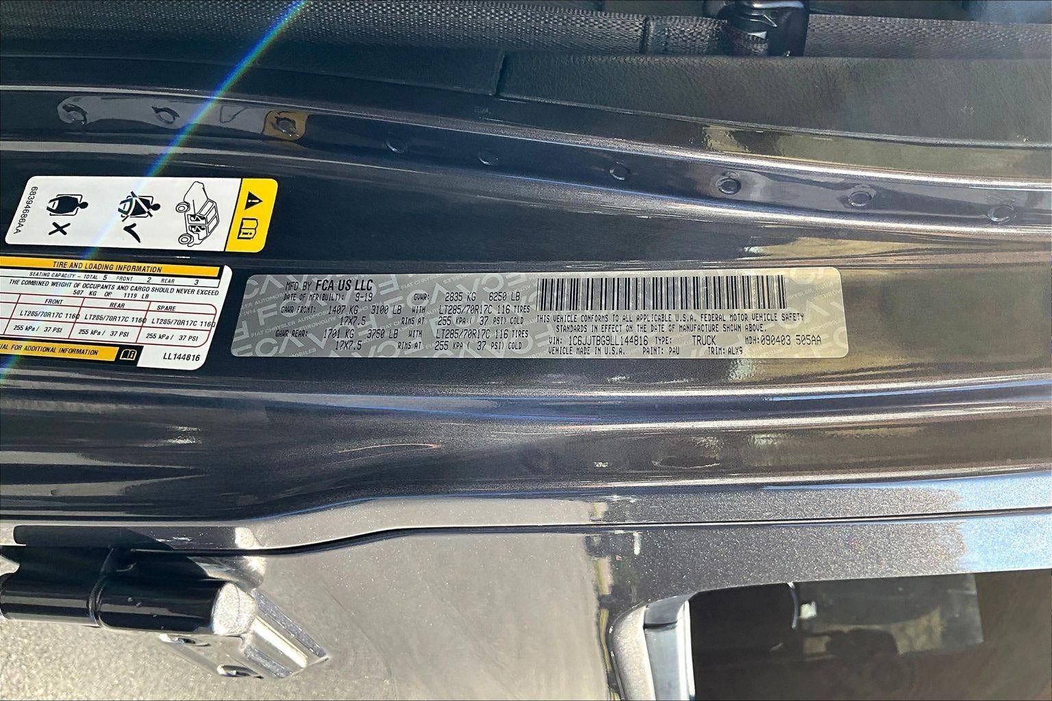 ENGINE: 3.6L V6 24V VVT UPG I W/ESS, TRANSMISSION: 8-SPEED AUTOMATIC (850RE), TIRES: LT285/70R17C BSW A/T, GRANITE CRYSTAL METALLIC CLEARCOAT, BLACK, LEATHER TRIMMED BUCKET SEATS, LED LIGHTING GROUP, 8.4"" RADIO & PREMIUM AUDIO GROUP, ADVANCED SAFETY GROUP, CARGO GROUP W/TRAIL RAIL SYSTEM, COLD WEATHER GROUP, SAFETY GROUP, AUXILIARY SWITCH GROUP, TRAILER TOW PACKAGE, BODY COLOR 3-PIECE HARD TOP, STEEL FRONT BUMPER, BODY COLOR FENDER FLARES (2-PIECE), SPRAY IN BEDLINER, RADIO: UCONNECT 4C NAV W/8.4"" DISPLAY, ALPINE PREMIUM AUDIO SYSTEM, Bluetooth® WIRELESS SPEAKER, REMOTE PROXIMITY KEYLESS ENTRY, REMOTE START SYSTEM, HARDTOP HEADLINER, ROLL-UP TONNEAU COVER, INTEGRATED OFF-ROAD CAMERA
