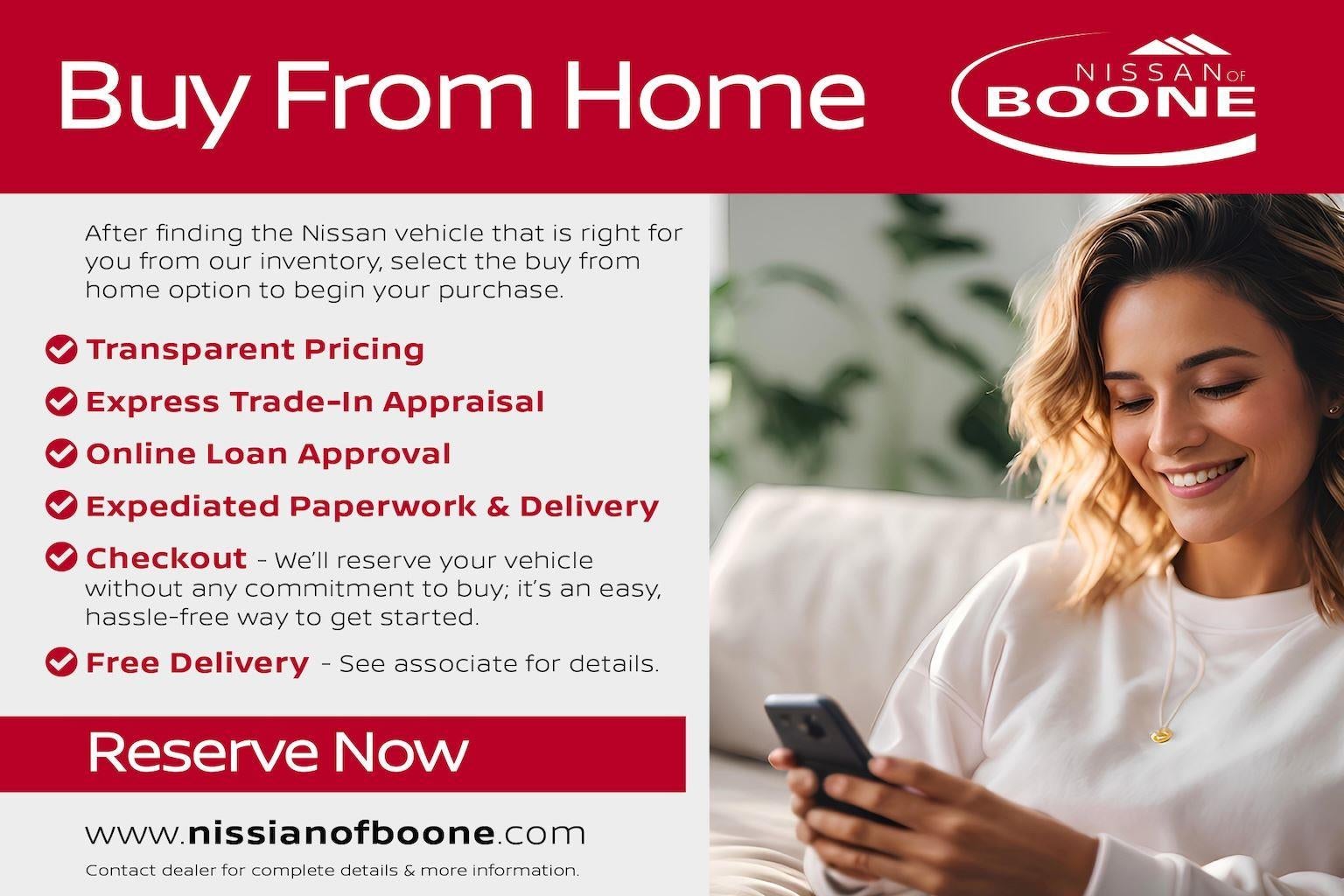 At Nissan of Boone, we're here to Serve you! Our staff is 100% dedicated to customer satisfaction and we understand that you need clear, transparent information throughout the car buying process. With our live market pricing philosophy, we offer the right cars at the right price, and the transparency to back it up!