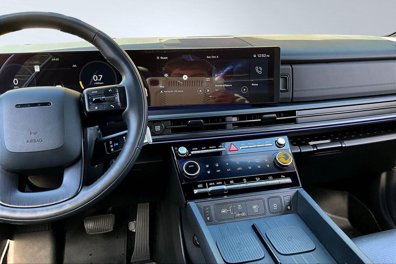 - Radio: AM/FM/HD Bose Premium Audio System -inc: 12 speakers including subwoofer, external amplifier, 12.3" wide touchscreen, Apple CarPlay and Android Auto, Bluetooth® hands-free w/wireless audio streaming, dynamic voice recognition, USB connectivity, SiriusXM, Blue Link+ connected car system, over-the-air updating capability, navigation system including traffic flow w/incident data via HD Radio (HERE) and rear seat quiet mode